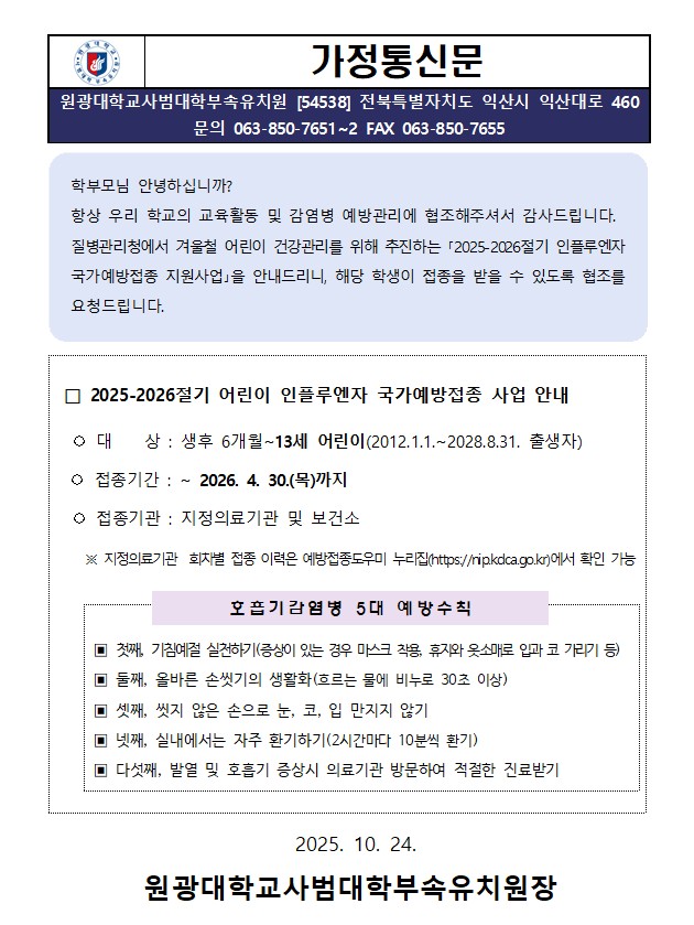 °Ü¿ïö ÀÎÇ÷翣ÀÚ È®»ê ¹× ÀüÆÄ Â÷´ÜÀ» À§ÇÑ '¾î¸°ÀÌ ÀÎÇ÷翣ÀÚ ±¹°¡¿¹¹æÁ¢Á¾ Áö¿ø »ç¾÷' ¹× ÀÎÇ÷翣ÀÚ °ü¸® ÁöħÀ» ¾È³»ÇÕ´Ï´Ù.