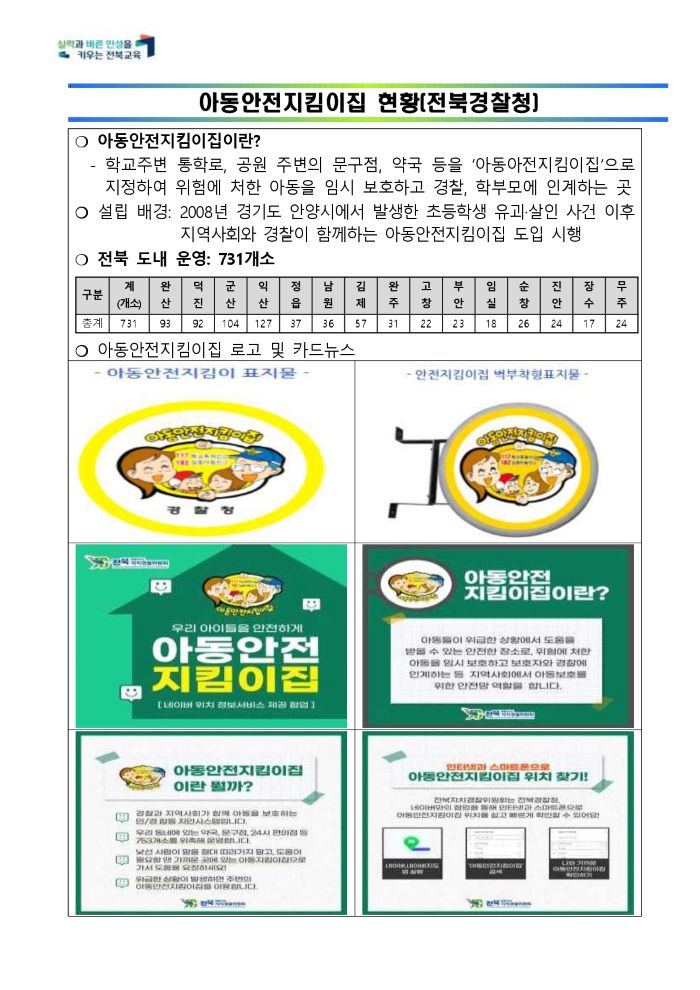 2. ¾Æµ¿¾ÈÀüÁöÅ´ÀÌÁý(º¸È£¼Ò): Çб³ ÁÖº¯ ÅëÇзÎ, °ø¿ø, ¹®±¸Á¡(ÆíÀÇÁ¡), ¾à±¹ µîÀ» '¾Æµ¿¾ÈÀüÁöÅ´ÀÌÁý'À¸·Î ÁöÁ¤ÇÏ¿© À§Çè¿¡ óÇÑ ¾Æµ¿ Àӽà º¸È£ ÈÄ °æÂû, º¸È£ÀÚ ÀΰèÇÏ´Â °÷