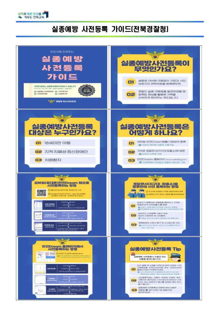 1. ½ÇÁ¾¿¹¹æ »çÀü µî·Ï °¡À̵å(½ÇÁ¾ ´ëºñ): ¾Æµ¿ÀÇ Áö¹®°ú »çÁø, º¸È£ÀÚ ¿¬¶ôó¸¦ »çÀü µî·ÏÇÏ¿© ½ÇÁ¾ ¾Æµ¿ ¹ß°ß½Ã µî·Ï Á¤º¸ Ȱ¿ë ÈÄ °¡Á· Àΰè