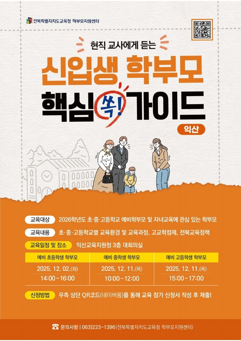 Àͻ걳À°Áö¿øÃ»¿¡¼ 2026Çг⵵ ÃÊµî ¿¹ºñ Çкθ𠱳À° Âü¿© ¾È³»¸¦ °øÁöÇÕ´Ï´Ù. 1. ±³À°±â°£: (ÀÍ»ê/Ãʵî) 2025³â 12¿ù 2ÀÏ(È) 14:00~16:00 2. ±³À°Àå¼Ò: Àͻ걳À°Áö¿øÃ» 3Ãþ ´ëȸÀÇ½Ç 3. ±³À°´ë»ó: 2026Çг⵵ ÃʵîÇб³ ¿¹ºñ Çкθð, Àڳ౳À°¿¡ °ü½ÉÀÖ´Â Çкθð 4. ½Åû±â°£: ÇöÀç ~ 25³â 12¿ù 2ÀÏ ÀüÀϱîÁö 5. ½Åû¹æ¹ý: QRÁ¢¼ö